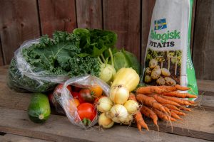 Jag (Ulrika) och Toffe driver detta lilla jordbruk i Valö-bol Östhammar, på gården finns också 2 katter. Vi har ca 30ha mark, men odlar grönsaker, potatis och snittblommor på ca 2,5ha. All vår odling är ekologisk och också KRAV godkänd, vi är certifierade via KIWA.